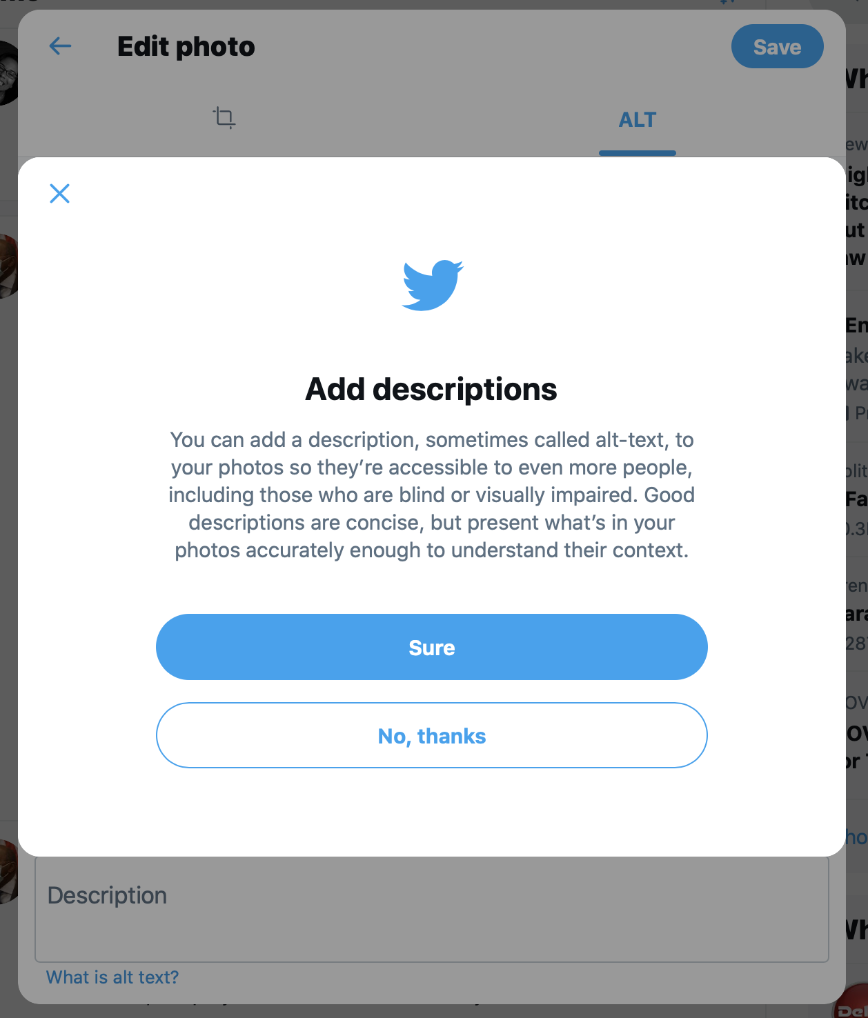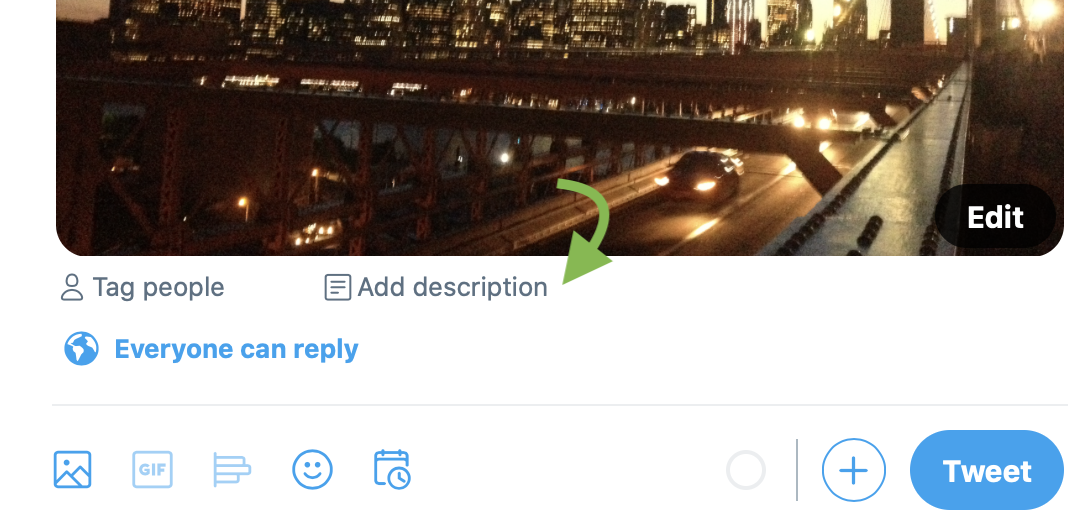 When posting visual content be sure to use Twitter’s feature to add alternative text so that it’s readable for screen readers.